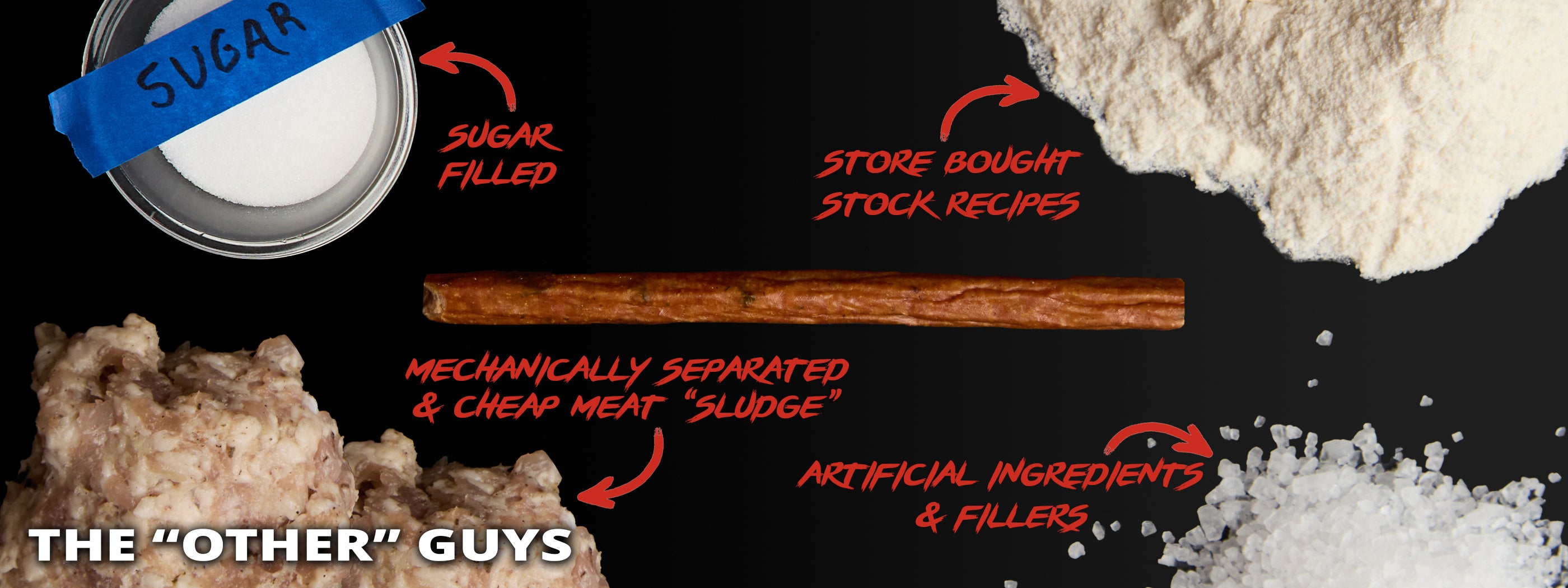While the other guys stuff their sticks full of mechanically separated meats, artificial ingredients, fillers, sugars and all that other junk - our sticks are all bull, and no bullsh*t.